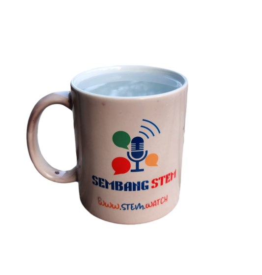 Cawan ini akan bertukar warna dari hitam ke putih dengan air panas. Sesuai untuk minuman panas, logo Sembang STEM podcast akan timbul. Cawan ini adalah rekabentuk khas edisi terhad!